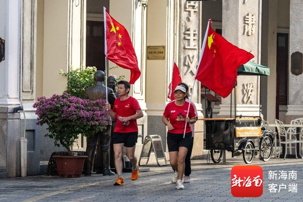 南海网、新海南客户端10月1日音讯(记者 刘孙谋)10月1日清晨,在海口骑楼老街中山路,四位市民手举五星红旗,从水巷口一路向前奔驰,旗号在风里舒展成活动的火焰。